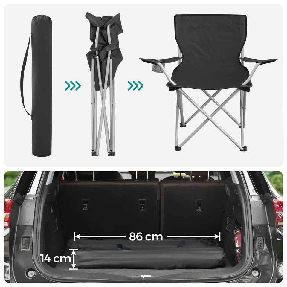Wil je er even helemaal tussenuit? Ontspan je met een cocktail of een boek in deze praktische campingstoelen!