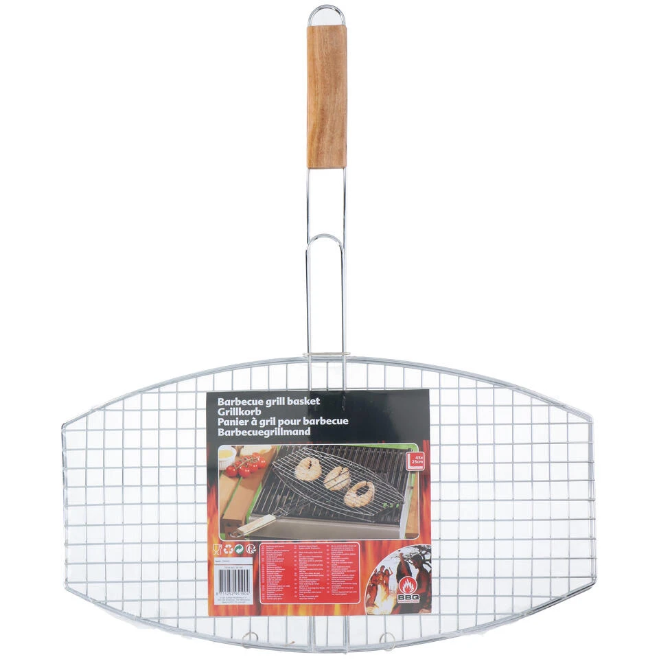 Barbecue braadrooster ovaal. Een handig braadrooster voor op de barbecue om bijvoorbeeld diverse soorten vlees of vis mee te braden. Materiaal: staal. Formaat: ongeveer 45 x 25 cm. BBQ accessoires en benodigdheden.