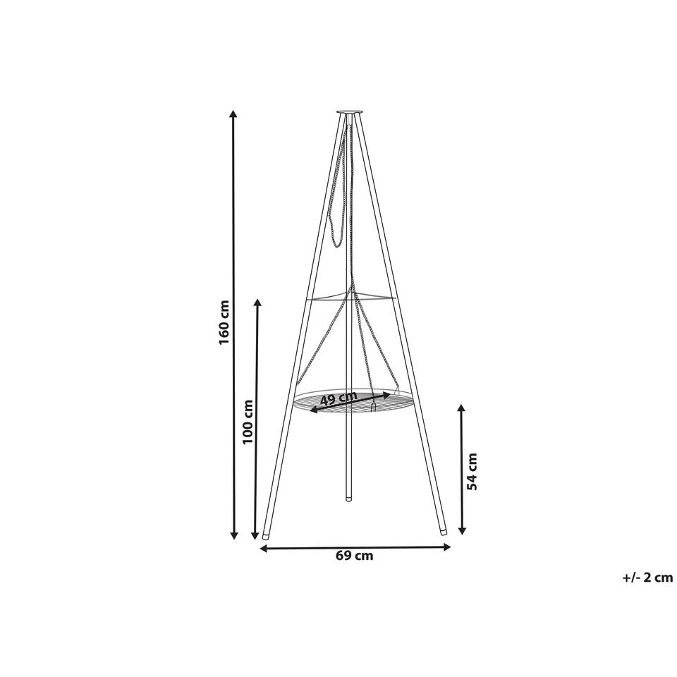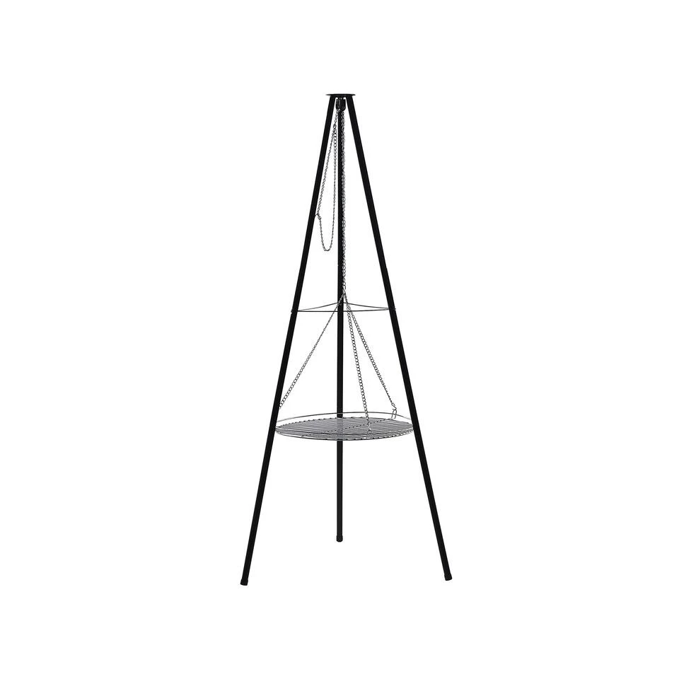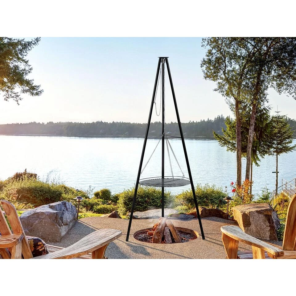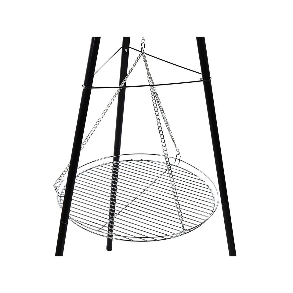 Klassieke driepootgrill met grillrooster. Eenvoudige grills zijn niet slechter dan ketels of tonnen – en deze hangende barbecue is daar een goed voorbeeld van. Je kunt je favoriete vissen, worstjes of groenten bereiden met behulp van het verstelbare stalen rooster, dat aan een duurzame ketting hangt. Het geheel is ook onderhoudsvriendelijk en kan met verschillende soorten brandstof worden gebruikt. De constructie is op een statief geplaatst, wat hem erg stabiel maakt.