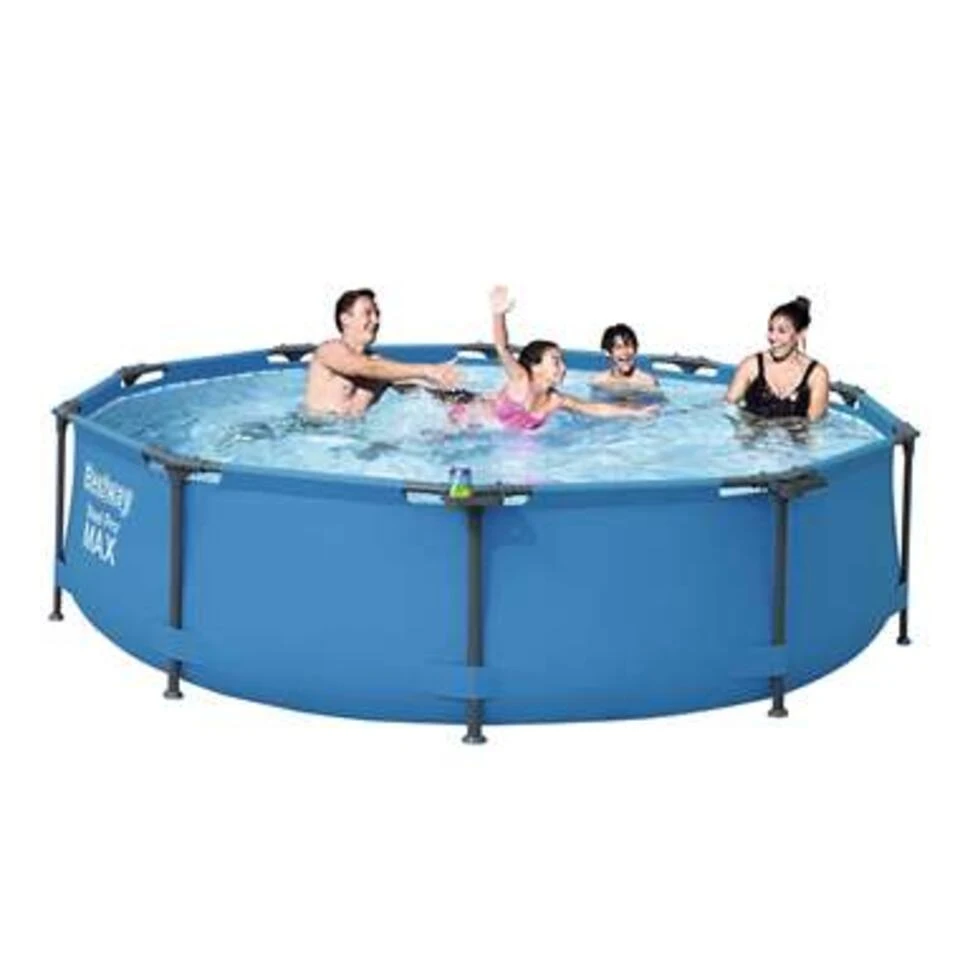 Wil jij graag een nieuw zwembad? Dan is de Bestway zwembad steel pro max rond blauw 305 wat voor jou. Het Bestway zwembad is een ideaal zwembad om tijdens de warme zomerdagen in de tuin te zetten. Het Bestway zwembad is ideaal voor het hele gezin. Het zwembad is van top kwaliteit en is extra versterkt door het stalen frame. Het buitenframe is vervaardigd uit tritech materiaal en is een blauwe kleur. De binnenkant van het zwembad heeft een mozaïek print. Het zwembad is eenvoudig op te zetten zonder gereedschap. Het zwembad heeft geen filterpomp maar een aftapplug. Het zwembad heeft een afmeting van 305 x 76 cm en een watercapaciteit van 4.678 liter.