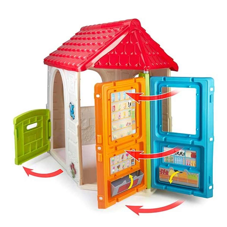 Het Feber Giro House speelhuisje is het eerste speelhuis met 6 verschillende speelmogelijkheden. Het Feber Giro speelhuis is voorzien van verschillende draaideuren met daarin verschillende speelmogelijkheden. Er is een keuken inclusief gootsteen, barbecue en een leuk tuintje in een plantenbak. Daarnaast heeft het speelhuisje een snack/drank automaat en een schoolbord waar je op kunt tekenen. Het Feber Giro Speelhuis is gemaakt van kleurrijke materialen die bestand zijn tegen zon en andere weersomstandigheden waardoor het huisje niet verkleurd. Het Giro speelhuis is geschikt voor kinderen vanaf 3 jaar. Afmeting: 120 x 70 x 135 cm.