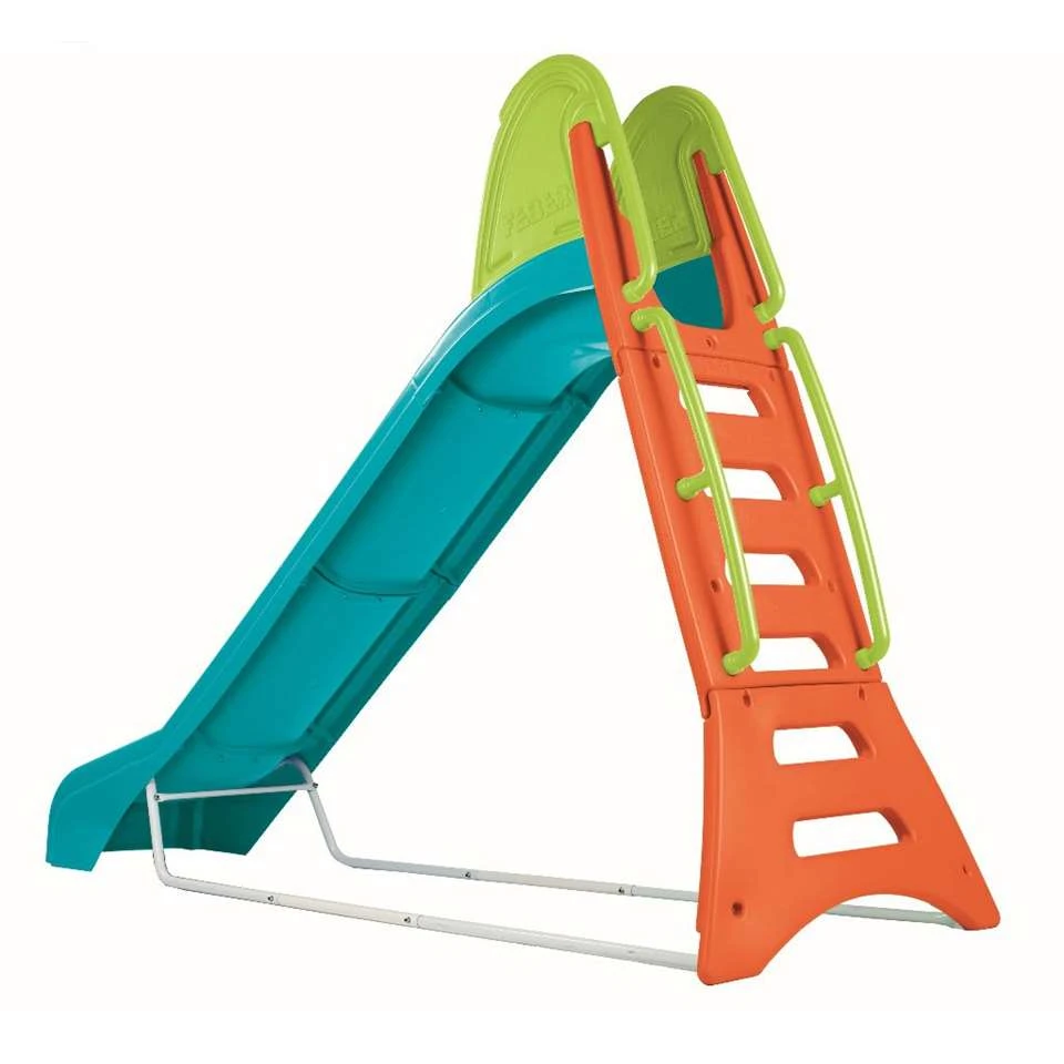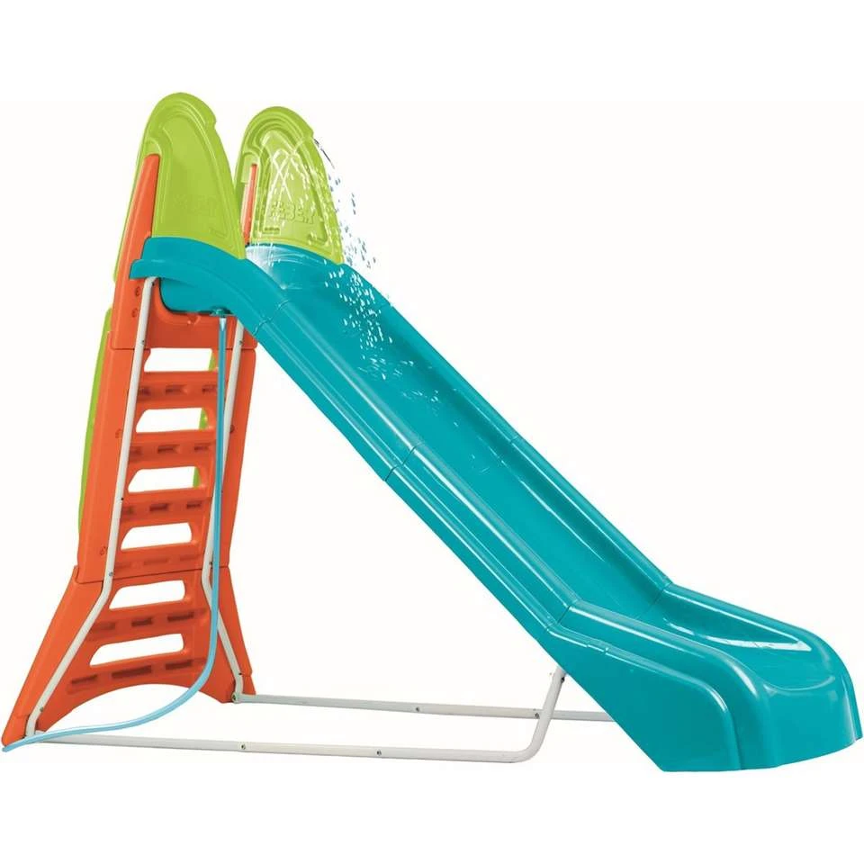 Feber Mega Slide + Water glijbaan. De Mega Reuze glijbaan van Feber is voorzien van een waterslang aansluiting en is enig in zijn soort.Deze enorme glijbaan is zeer stevig en voorzien van een stalen buisframe als basis. Doormiddel van de stevige treden en de leuning kunnen de kinderen veilig naar boven klimmen. Aan de onderzijde kan de tuinslang gekoppeld worden voor nog meer speelplezier! Geweldige glijbaan voor urenlang speelplezier! Leeftijd: 3+. Afmeting: 300x120x220cm. Wordt geleverd in bruine doos met fullcolour poster.