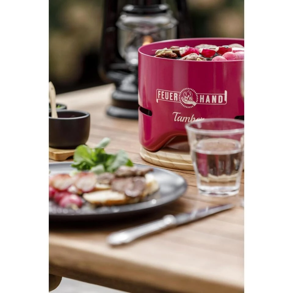 De Feuerhand Tamber is de ideale tafelgrill voor het kleine diner. Terwijl de handige tafel grill gerechten kookt, kun je jezelf aan het moment wijden en genieten van de kleine gegrilde lekkernijen aan tafel. De Tamber-deksel dient als een warmtebestendige deksel voor uw tafel tijdens het grillproces en beveiligt de kantelbereidingsstand van uw tafelrooster. De Tamber grill is warm na 15 tot 20 minuten. Zelfs na het grillen maakt de Tamber het u gemakkelijk, omdat de componenten gemakkelijk kunnen worden verwijderd en gereinigd. Het grillrooster met anti-kleef zorgt ervoor dat er geen voedselresten achterblijven.