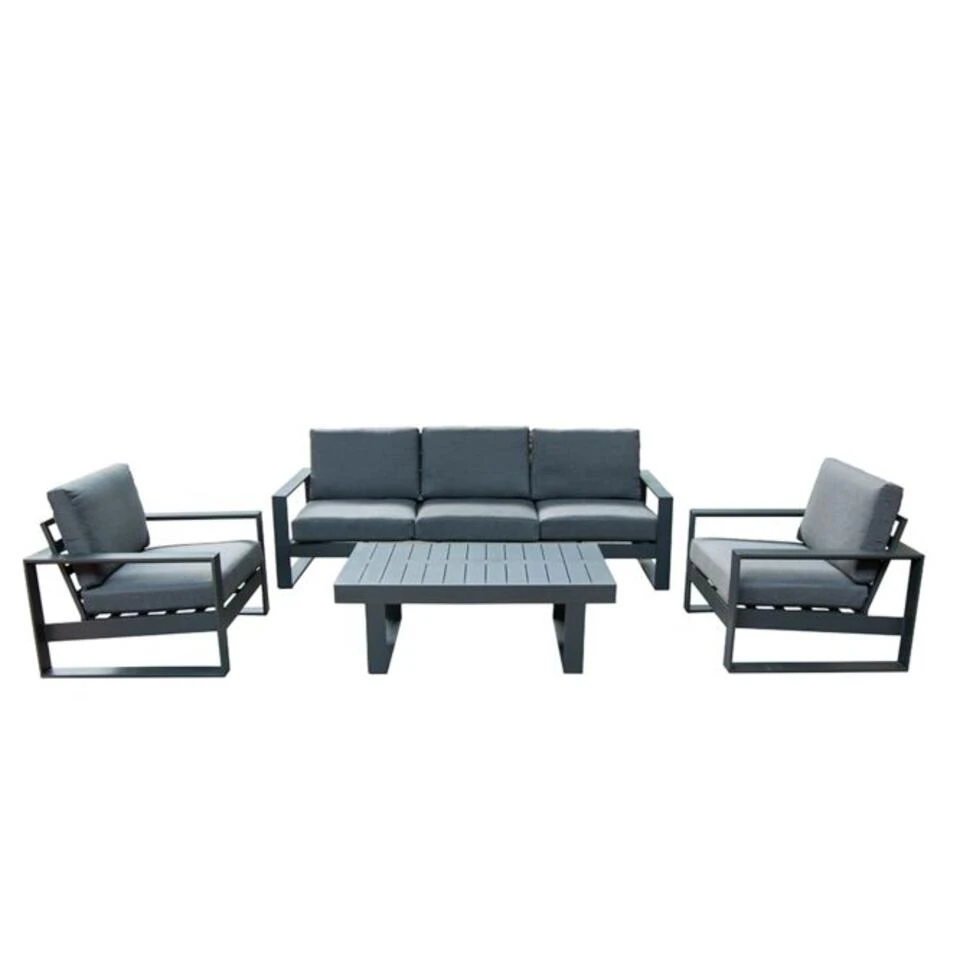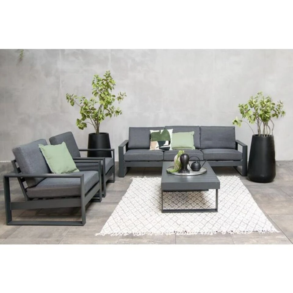 Deze aluminium loungeset heeft een modern design met 2 loungestoelen en een loungebank. De kussens van de Empoli loungeset bieden een prettig comfort om optimaal te kunnen ontspannen.