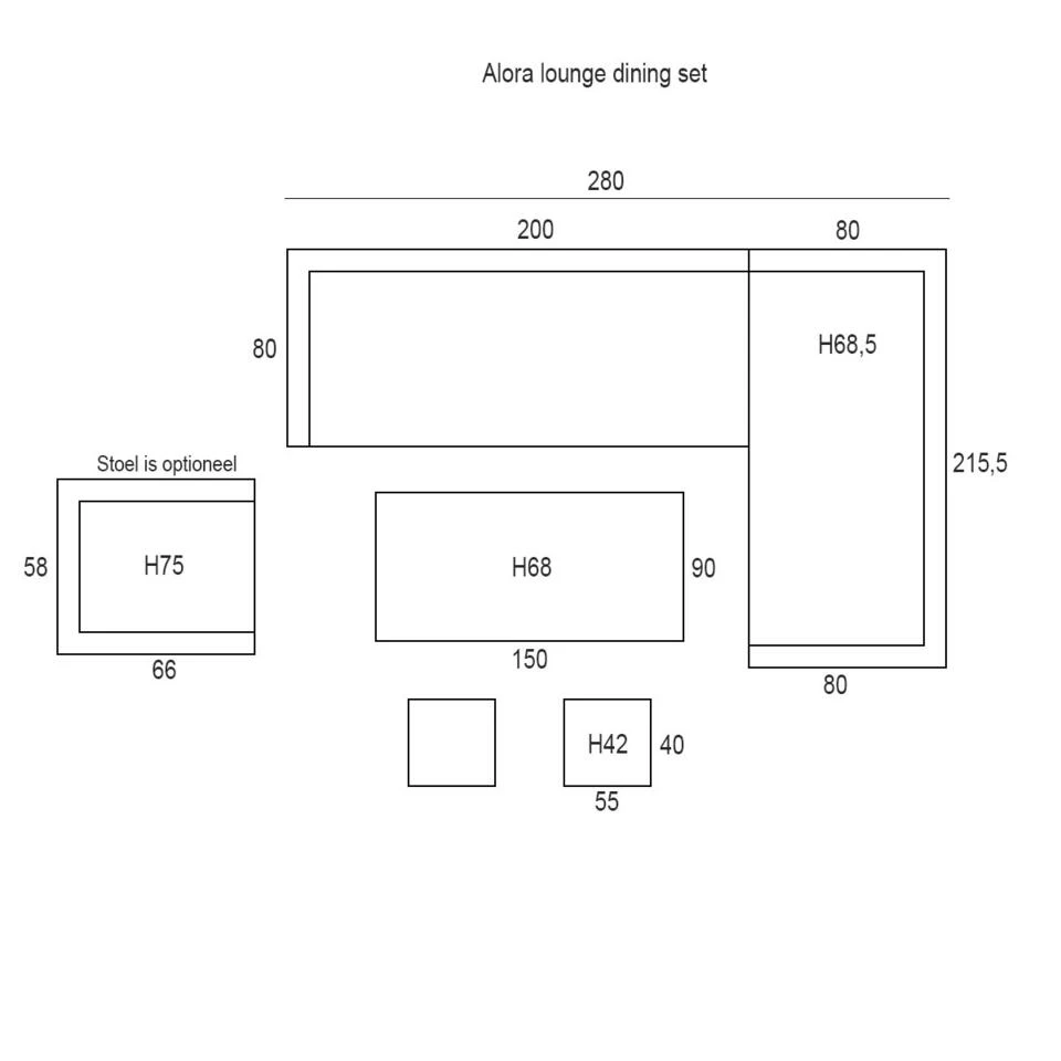 De prachtige Alora loungeset bestaat uit een driezits loungebank, een driezits loungebank met rechts een open uiteinde, twee bijzet krukjes en een loungetafel. Naast deze loungeset is er ook de 4-delige Alora loungeset verkrijgbaar. Mocht de rechter opstelling niet passend zijn, dan is deze loungeset ook in een linker opstelling te verkrijgen. Wil je deze lounge dining set uitbreiden? Kies dan voor de Alora tuinstoel uit dezelfde serie.
