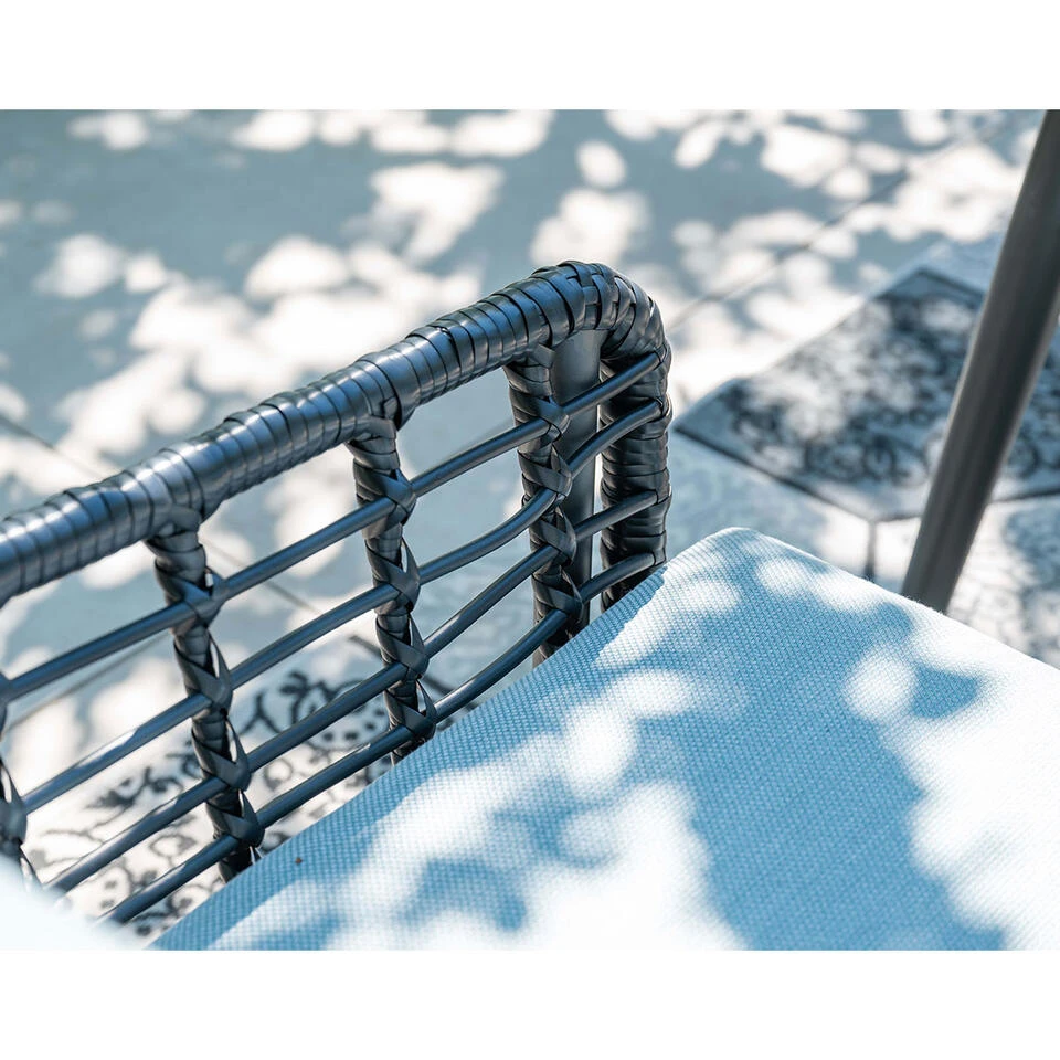 De Ashton is vervaardigd uit een aluminium frame met daaromheen zwart rotan wicker vlechtwerkdraad.