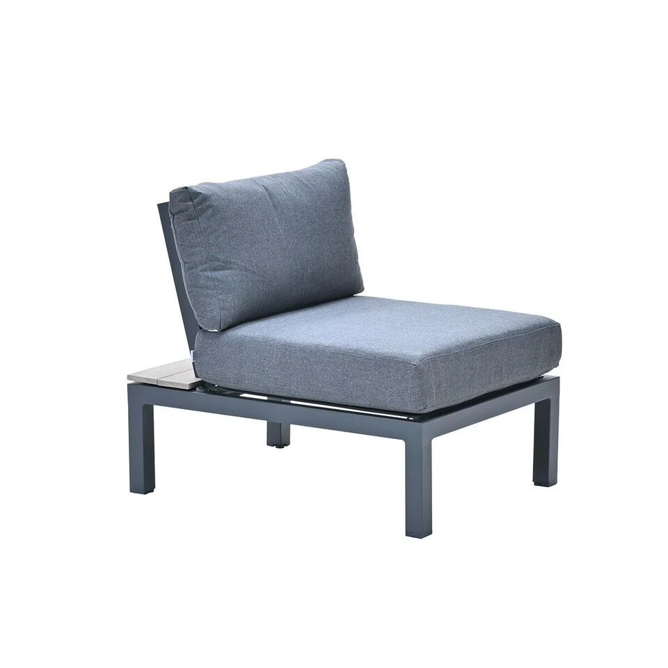 Het frame van de loungestoel is gemaakt van aluminium met een matte poedercoating in de kleur donker grijs. Aluminium heeft als groot voordeel dat het een onderhoudsvriendelijk product is. De details zijn gemaakt van imowood latten, dit is een onderhoudsvriendelijke kunststof met een mooie houtuitstraling. Let wel op voor scherpe voorwerpen en vector vorming anders heb je zo krassen of smeltpuntjes in het imowood. De loungeset wordt geleverd inclusief dikke comfortabele kussen die voorzien zijn van een waterafstotende coating. De afmetingen van de loungestoel is 70 x 91,5 x 76 cm