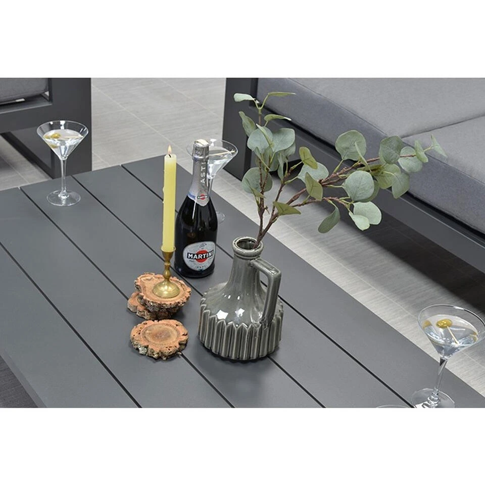 De Plaza lounge tafel dient nog gemonteerd te worden. De poten moeten op een eenvoudig manier onder de tafel worden gemonteerd. Het tafelblad is al één geheel. Het echte genieten kan daarna beginnen! De Plaza loungeset uitbreiden? De Plaza serie heeft een groot assortiment en is volledig uit te breiden naar wens. De gehele Plaza serie van kwaliteitsmerk Garden Impressions bestaat uit; een 3-zits bank, hoek bank, midden element, poof, lounge tafel, lounge fauteuil en een lounge dining tafel.