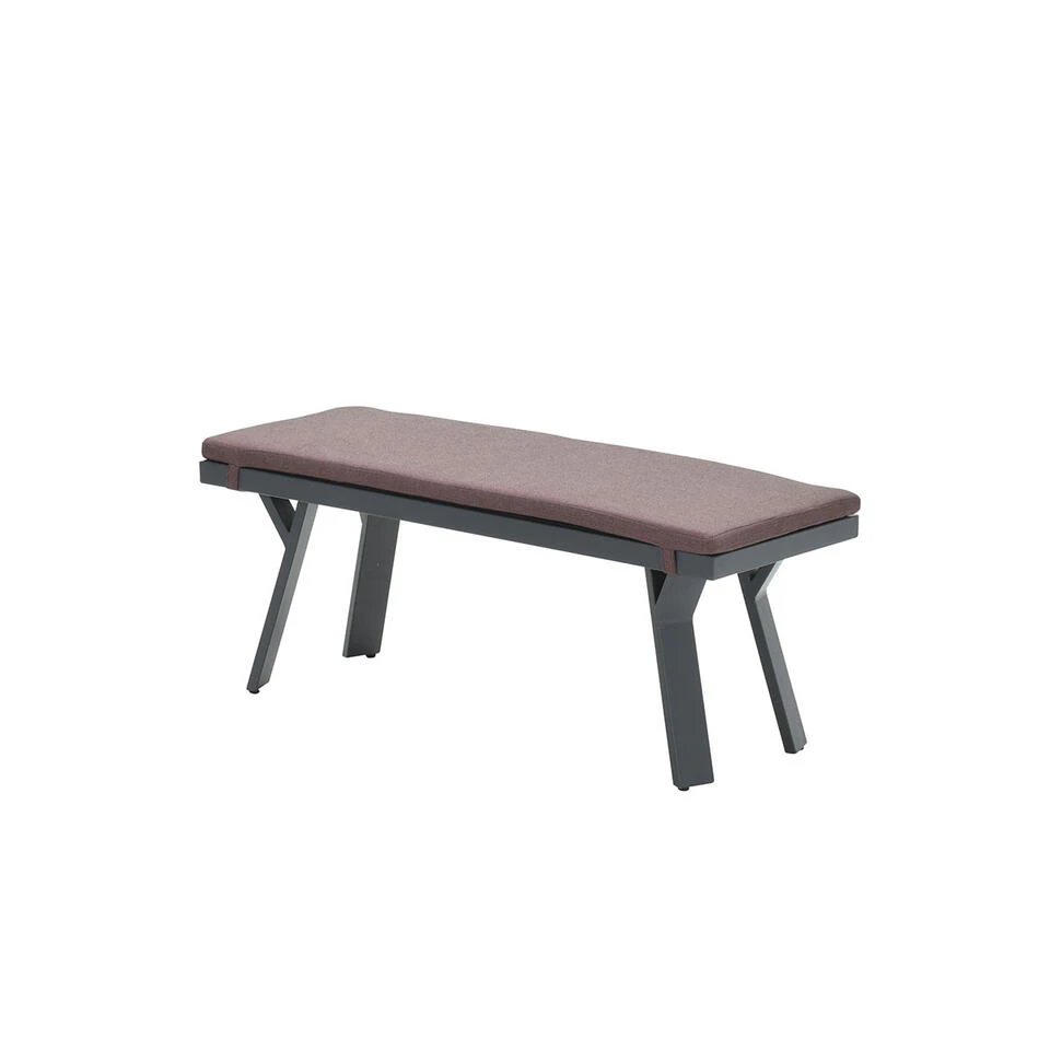 Afmeting sportbank: L 110 x B 41x H 43 cm Aluminium sportbank in carbon black Inclusief polyester kussens in de kleur koper