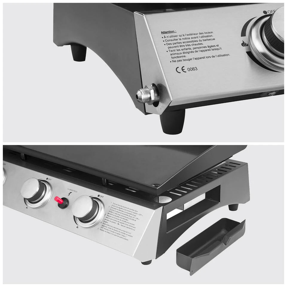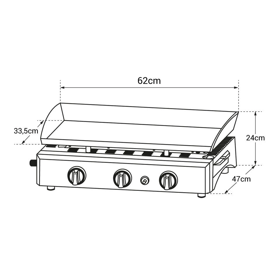 De gasbakplaat is gemakkelijk te gebruiken en te onderhouden. De 3 branders en de geëmailleerde plaat verdelen de warmte gelijkmatig voor een perfecte garing en gezond, smakelijk eten. Gemakkelijk te verplaatsen, uw gasten kunnen ook veilig deelnemen, goed humeur gegarandeerd!