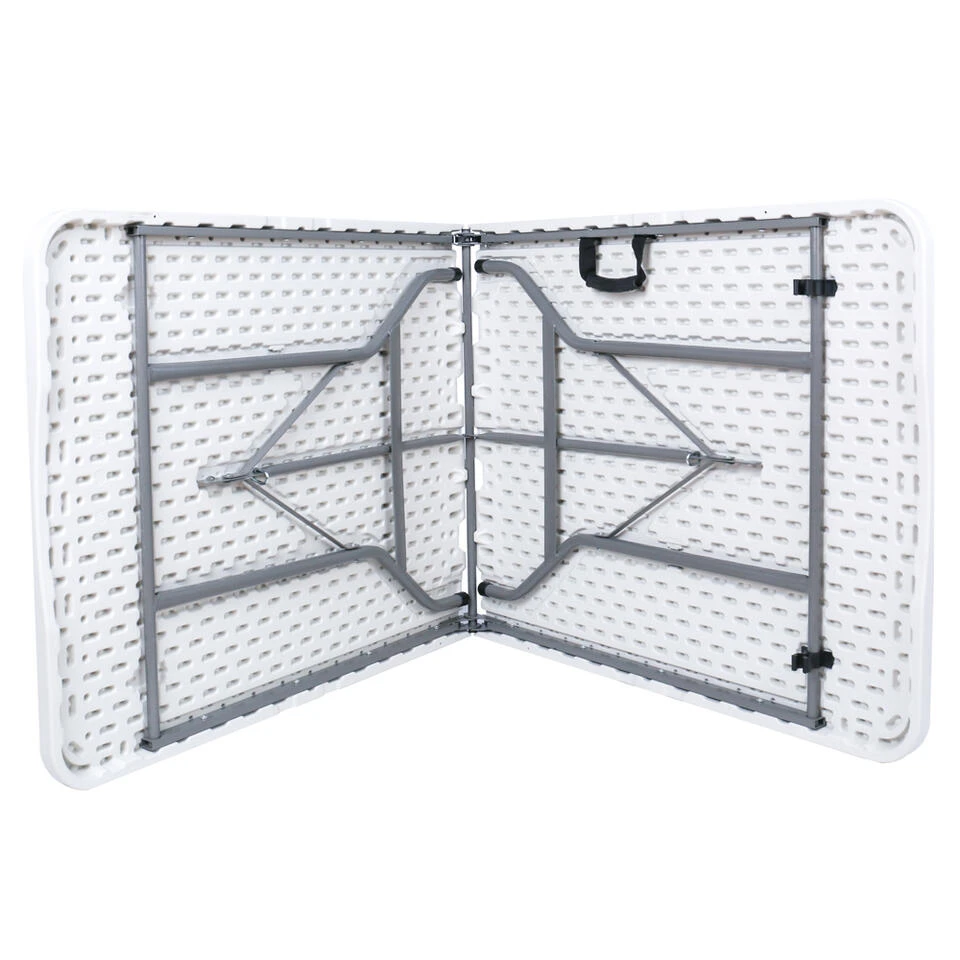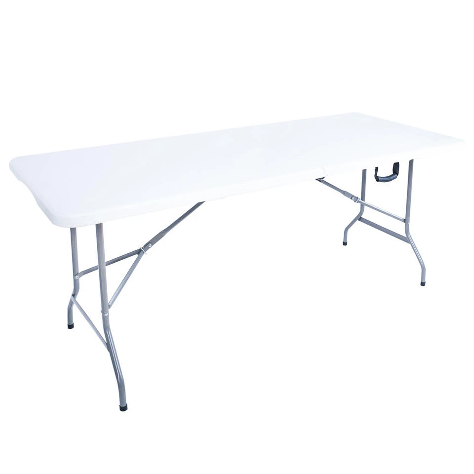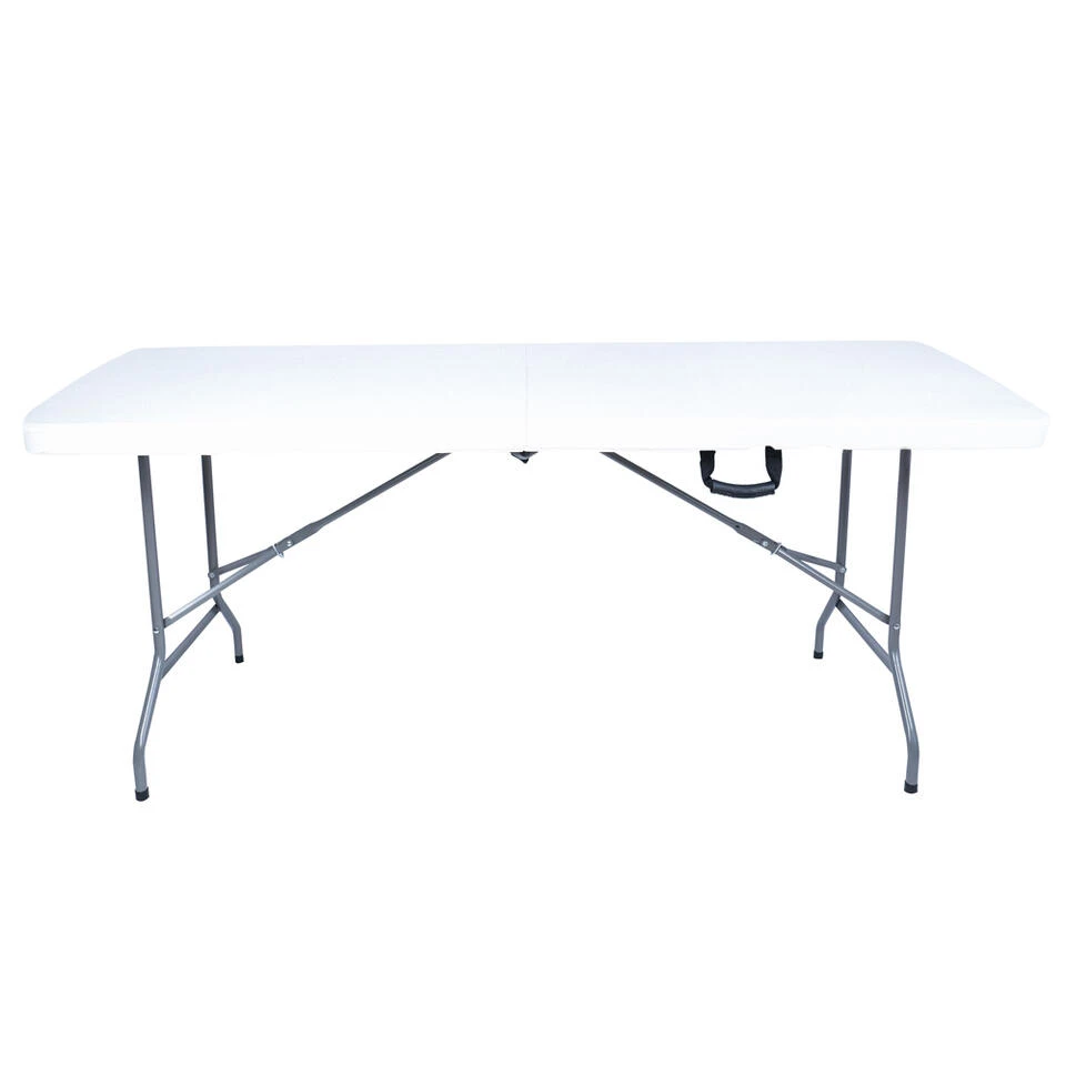 Deze kunststof vouwtafel is ideaal als campingtafel en als extra eettafel tijdens feesten en gelegenheden. De tafel heeft een ruim oppervlak van 180 cm dat ruimte biedt aan 6 tot 8 personen. Heb je de tafel niet nodig? Dan kun je deze inklappen en opbergen. Dankzij het handvat is de tafel makkelijk te verplaatsen.