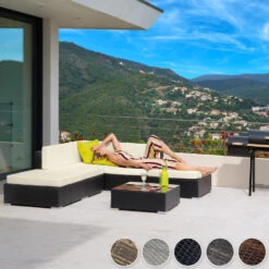 Tectake – Loungeset Met Tafel – Incl. 2 Overtreksets – Zwart