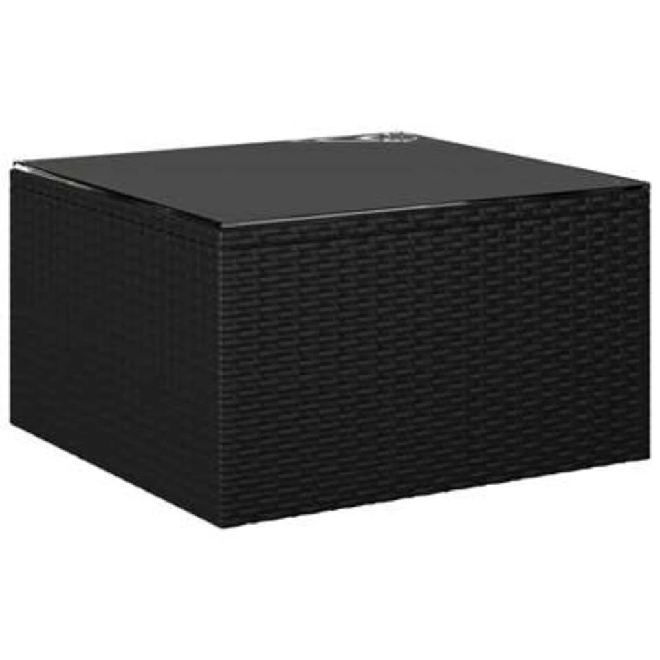 De levering bevat 3 hoekbanken, 2 middenbanken, 1 armstoel, 6 zitkussens, 9 rugkussens en 1 salontafel met glazen blad. Opmerking: we raden aan om de rattan set af te dekken als het regent, sneeuwt of vriest.