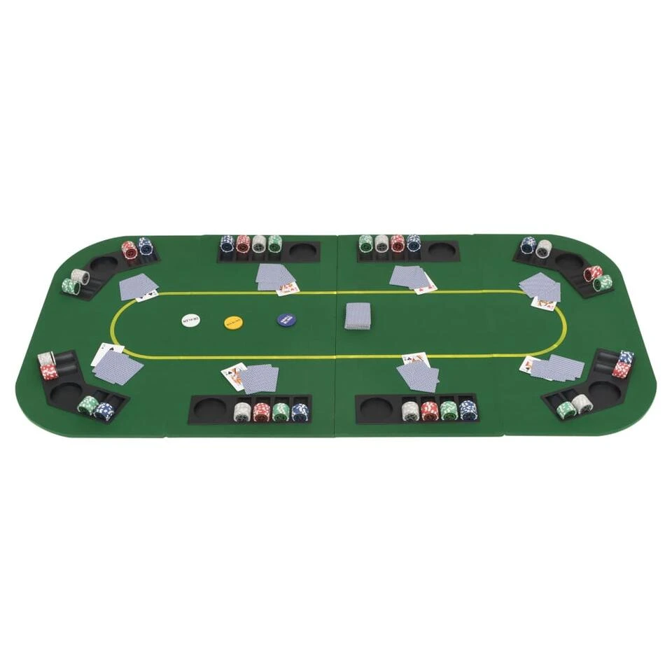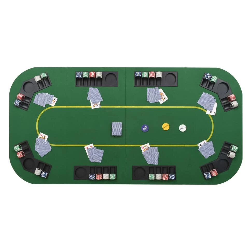 Het casino tafelblad is ontworpen met 8 beker- en chiphouders zodat iedere speler zijn of haar eigen plaats heeft. Als je het poker tafelblad niet gebruikt, kan je hem gemakkelijk inklappen en opbergen. Plaats ons inklapbare pokertafelblad op je tafel en begin met spelen!