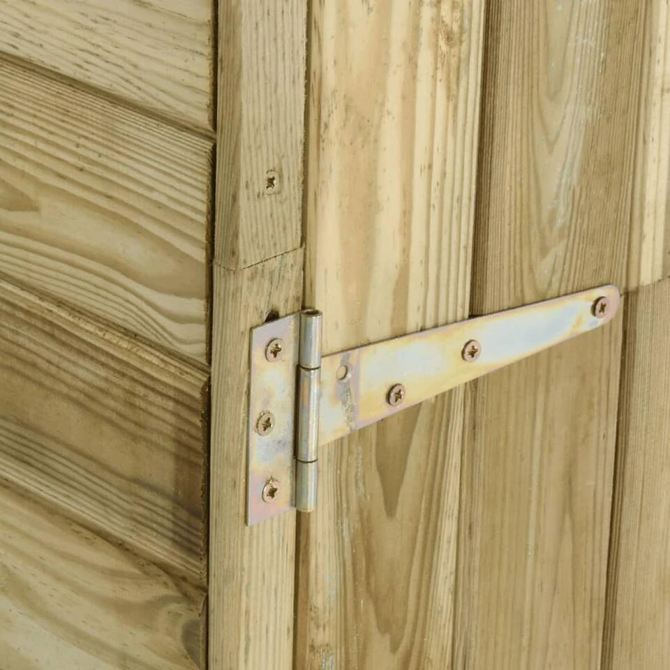 Deze opslagschuur is gemaakt van grenenhout dat milieuvriendelijk is. Het geïmpregneerde grenenhout is slijtvast en weer- en rotbestendig. Bovendien is het dak bekleed met waterdicht bouwkarton.